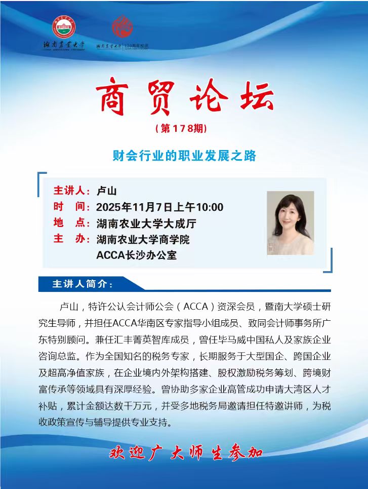 主办单位:湖南农业大学商学院、ACCA长沙办公室