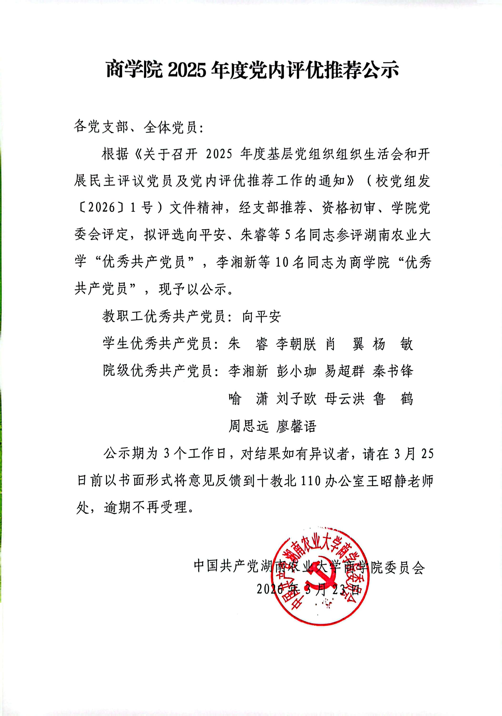 商学院2025年度党内评优推荐公示