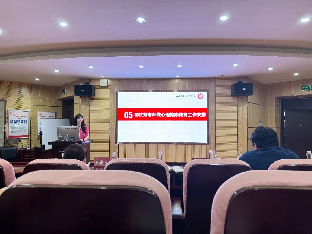 柳欢芳老师就心理健康教育工作进行部署。她表示,新学期将进一步加强学生心理健康宣传教育,重点关注学生学业压力、人际关系等常见心理问题。同时,她呼吁各班心理委员积极发挥带头作用,及时发现并反馈学生心理动态。