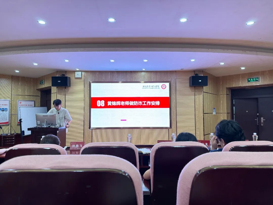 最后,黄锦辉老师就防范电信网络诈骗工作进行强调。他表示,学生干部要积极向身边同学科普反诈知识,及时转发相应的反诈推文,增强学生的防诈意识。同时,他提醒全体学生务必提高警惕,不轻信陌生信息,不随意转账,确保个人财产安全。