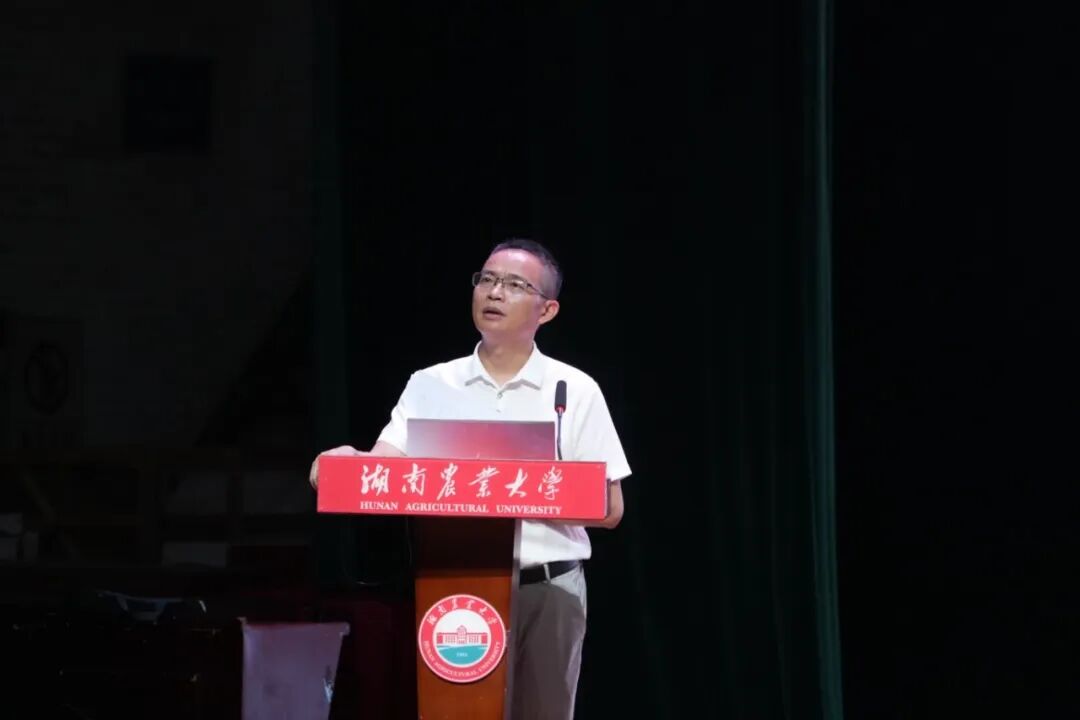 为传承伟大抗战精神,激励湘农商院学子勇担时代使命,9月17日上午,湖南农业大学商学院2025级本科新生第一堂党课在大礼堂顺利召开,本次党课由商学院党委书记莫华主讲。