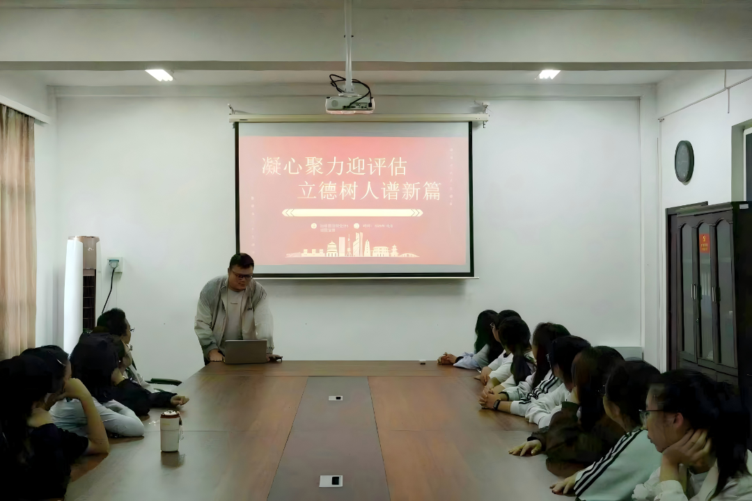 为响应高校评估工作号召,在积极迎接教学评估的同时,又深化“立德树人”育人理念。2025年10月16日下午,商学院2025级会计5班团支部于六教321开展“凝心聚力迎评估,立德树人谱新篇”主题团日活动。团支书田文带领全班同学认真学习,领会立德教育精神。