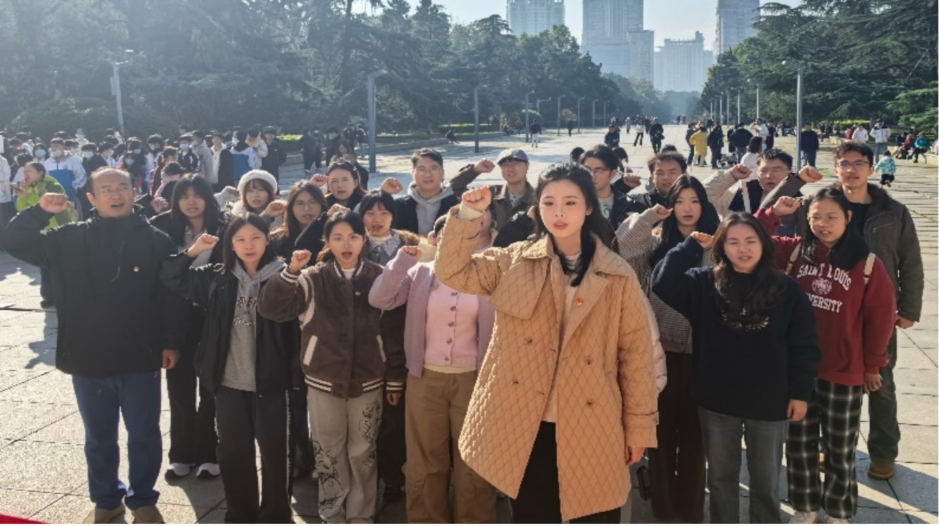 本网讯(商学院 黄雨萱)11月21日,商学院在湖南烈士纪念塔开展了一场“缅怀革命先烈,赓续红色血脉”的“芳草计划”主题党日活动。本次活动由研究生辅导员李文涛带队,学院研究生团总支及研究生会30余名同学共同参与,旨在通过沉浸式的实地学习,回溯革命历史,感悟英烈精神,筑牢信仰之基,汲取奋进之力。