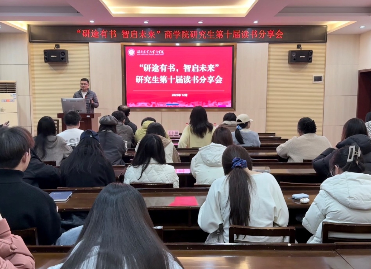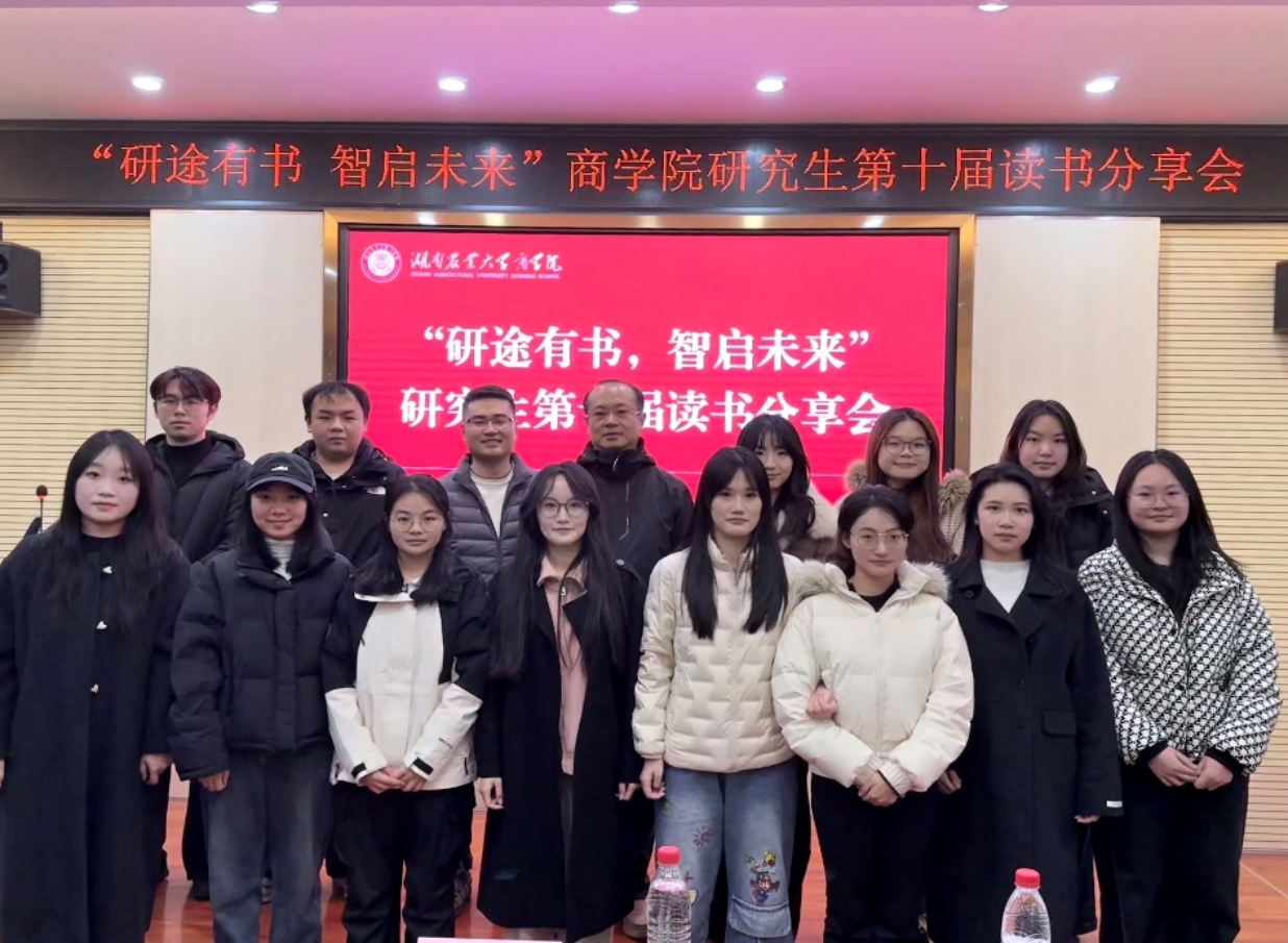 本网讯(商学院 郭池静)为拓展阅读视野、激发创新思维,促进跨学科学术交流,营造校园思辨氛围。12月30日晚, “研途有书,智启未来” 商学院研究生第十届读书分享会决赛在十教北103顺利举行。本次活动由舒时锐同学主持,邀请到研究生院管理科王仁赫、商学院辅导员柳欢芳、李文涛老师担任评委,吸引学院阅读爱好者50余人,同八强选手共赴一场书与未来的对话。