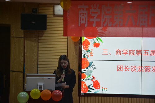 大会由商学院艺术团主持队胡敏同学与吕曾晖同学主持。在简要回顾了第五届艺术团的精彩故事后,第五届艺术团团长谈紫薇同学就往年的工作做出总结,并提出希望新一届成员汲取教训,努力奋斗。紧接着,第六届艺术团团长颜如玉同学分享了自己对艺术团的看法与设想。随后,商学院团委学生会文体副主席王福海同学宣读第六届艺术团成员名单。18级王郭浩宇同学代表艺术团新成员发言,提出艺术团是展示自己、证明自己的平台,新成员们会将往届前辈的优良传统继承下来并努力发扬。之后,由学工组各老师为新一届艺术团学生干部颁发聘书。