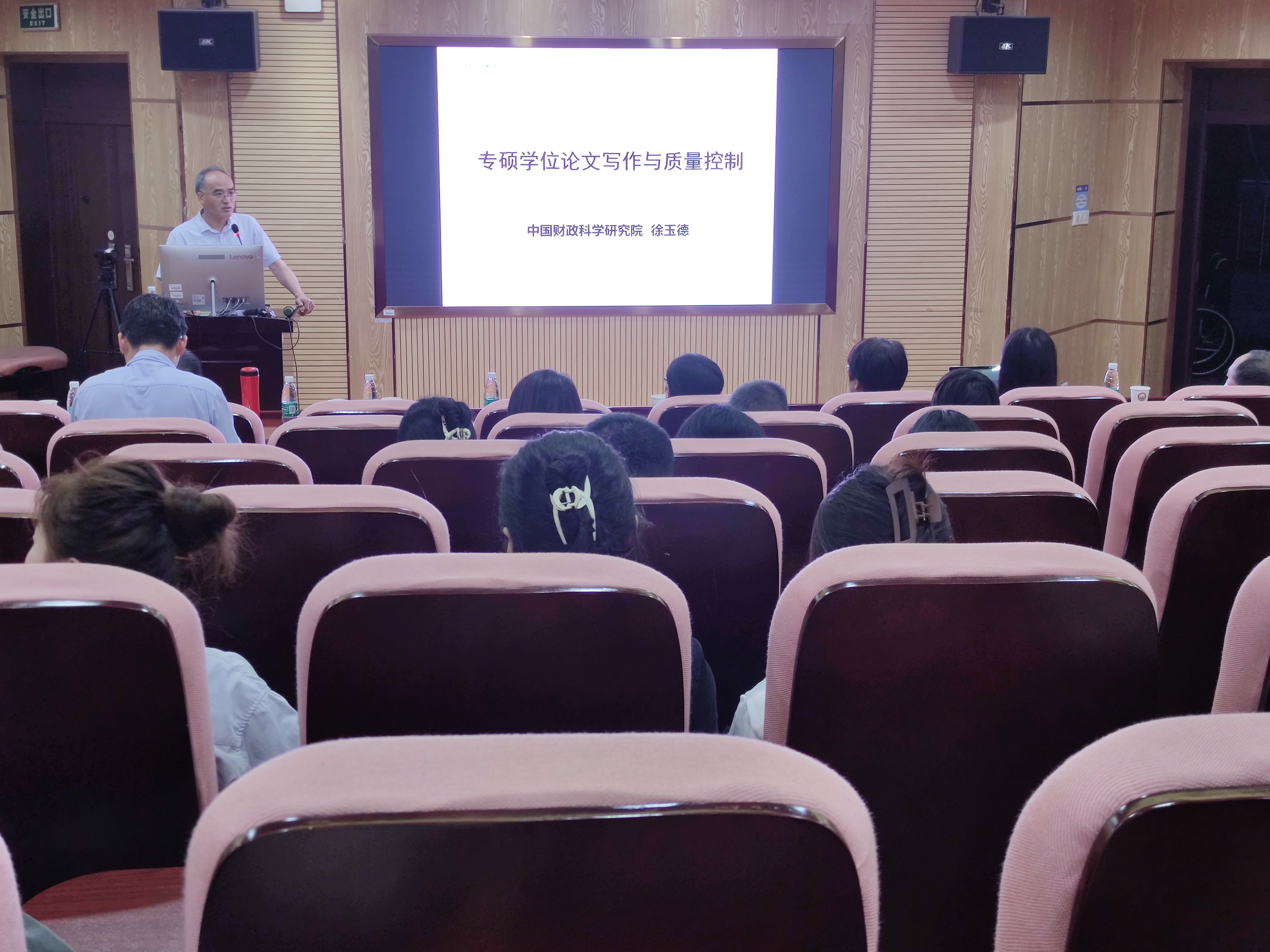 (商学院 崔雨璇)6月16日,财政部中国财政科学研究院党委委员、副院长、国务院学位委员会第八届工商管理学科评议组成员徐玉德研究员做客我校第144期商贸论坛,作了题为“会计专业学位论文写作与质量控制”的学术报告,商学院MPAcc专业学位点导师、研究生代表共150人聆听了本次报告。本期论坛由商学院院长杨亦民教授主持。