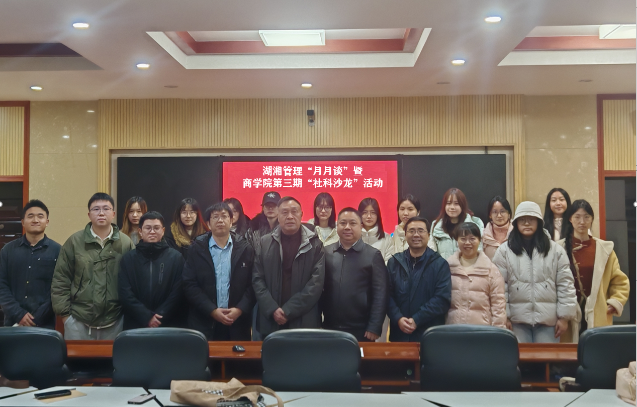 “社科沙龙”作为我院科研团队学术交流的品牌活动,聚焦学院七个特色科研团队研究进展及成果培育,探讨科研服务地方经济发展的路径,为产业发展把脉问诊、答疑解惑。此次与湖南省管理科学学会“湖湘管理‘月月谈’学术沙龙”联合举办,有效拓展了交流的广度和深度,促进了跨学科交流,未来将持续聚焦学术前沿,为湖南乃至全国的管理创新与高质量发展凝聚更多智慧力量。