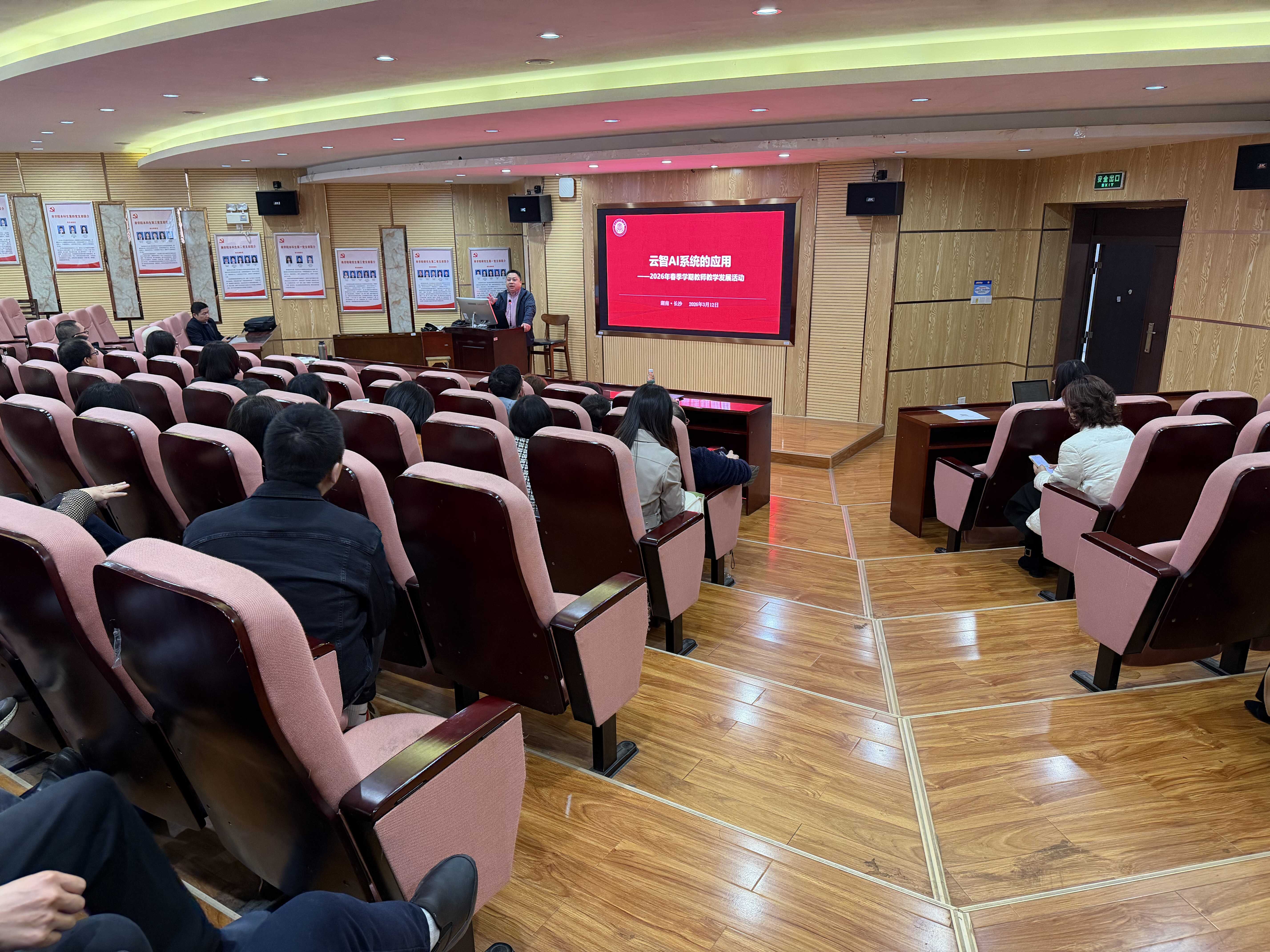 本网讯(商学院 李湘新、杨雨凡)为深入推进人工智能技术与教育教学深度融合,提升教师数字化教学能力,3月12日下午,商学院在十教北102开展教师AI素养能力提升培训。活动特邀湖南钦点云智科技有限公司廖俊先生担任主讲嘉宾,商学院全体教师参加,活动由副院长唐文源主持。