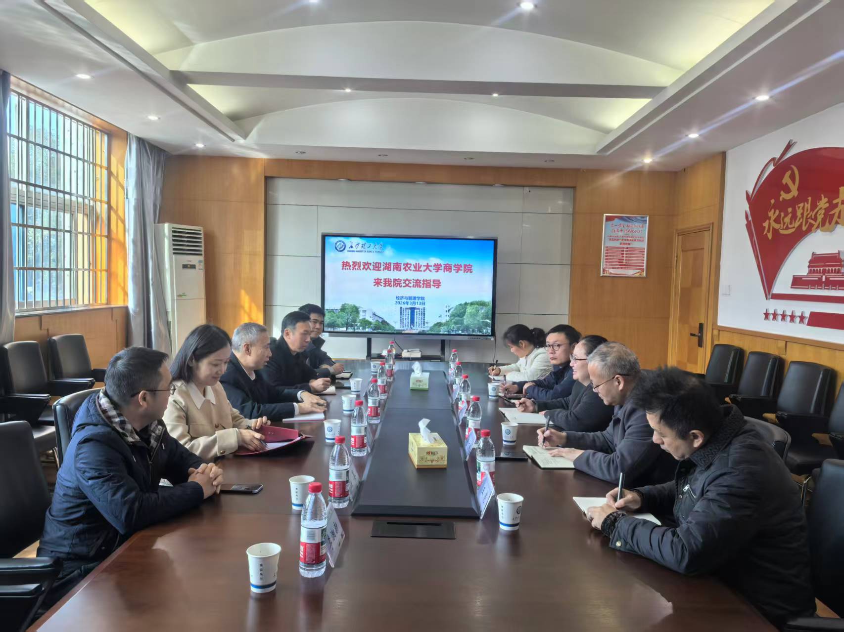 本网讯(商学院 李湘新)为做好2026版本科专业人才培养方案修订工作,3月13日上午,商学院教学副院长莫鸣率会计学系主任彭小珈、市场营销系主任周宇飞、电子商务系主任盛晏、工商管理系副主任喻潇等一行6人,赴长沙理工大学经济与管理学院开展专题调研,学习其在本科人才培养方案制定、专业建设与认证、实践教学及校企合作等方面的经验。